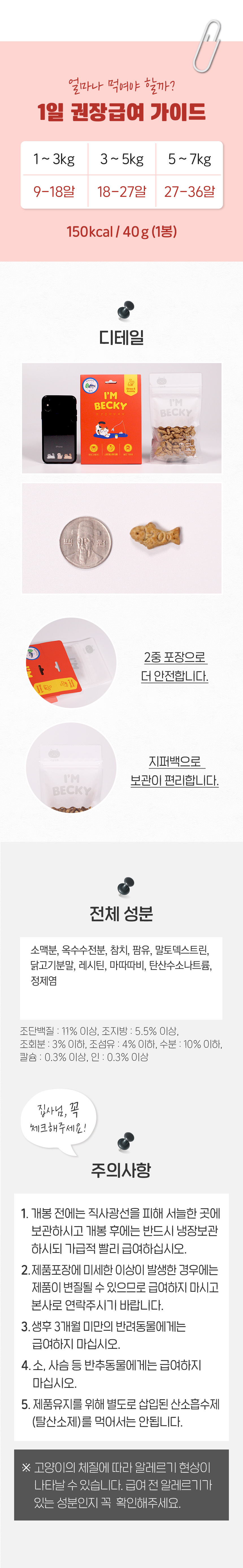 | 원재료명 및 함량 | 소맥분 , 옥수수전분, 참치, 팜유, 말토덱스트린, 닭고기분말, 레시틴, 마따따비, 탄산수소나트륨, 정제염 |