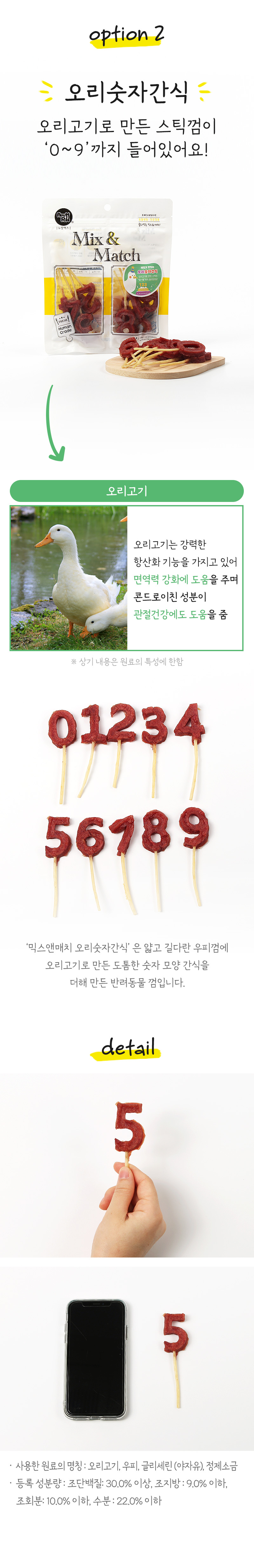 - 오리고기로 만든 스틱껌이 0~9까지 들어있음