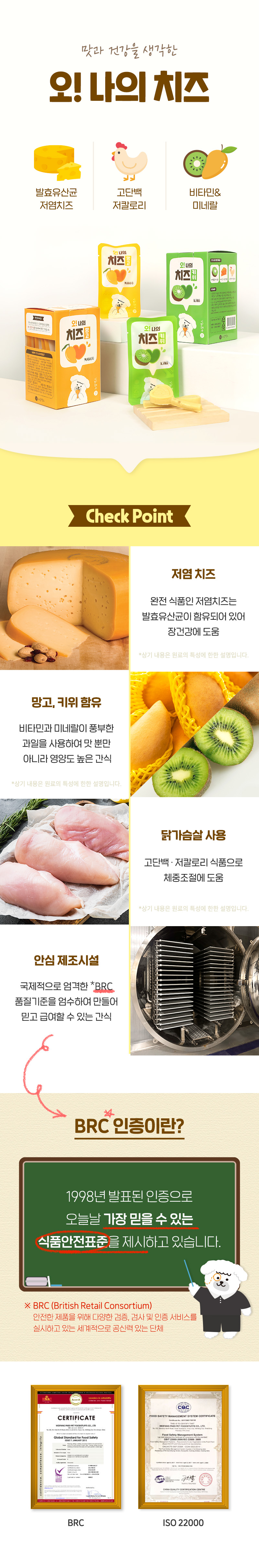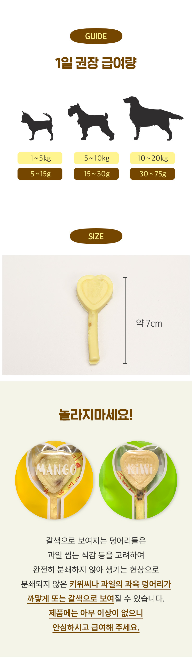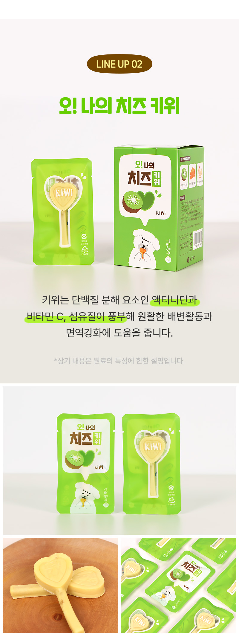 | 원재료명 및 함량 | 닭고기, 치즈, 키위, 글리세린 (야자), 식물성단백질 (대두) |