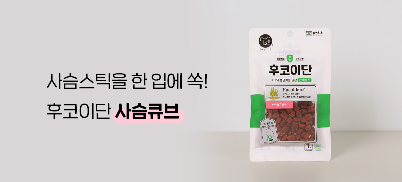 | 원재료명 및 함량 | 사슴고기, 닭고기, 쌀가루, 감자분말, 후코이단, D-소르비톨, 글리세린, 제3인산칼슘, 비타민C, 비타민E, 정제염, 프락토올리고당, 소르빈산칼륨, 글루코사민 |