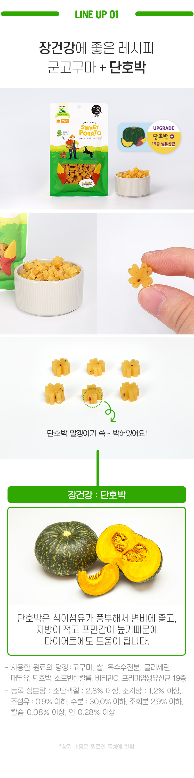 - 배변활동과 장건강에 좋은 단호박 함유 -