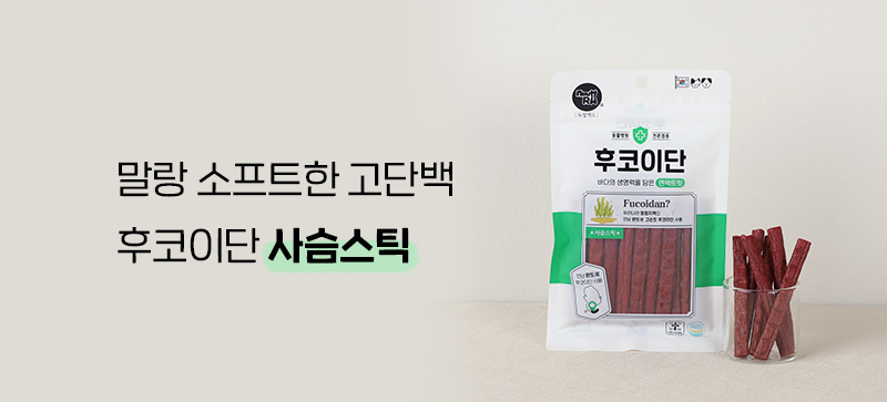| 원재료명 및 함량 | 사슴고기, 닭고기, 쌀가루, 감자분말, 후코이단, D-소르비톨, 글리세린, 제3인산칼슘, 비타민C, 비타민E, 정제염, 프락토올리고당, 소르빈산칼륨, 글루코사민 |